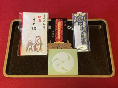 (交通安全守、金色カード、新・不動明王ステッカー、開運えと飴)
